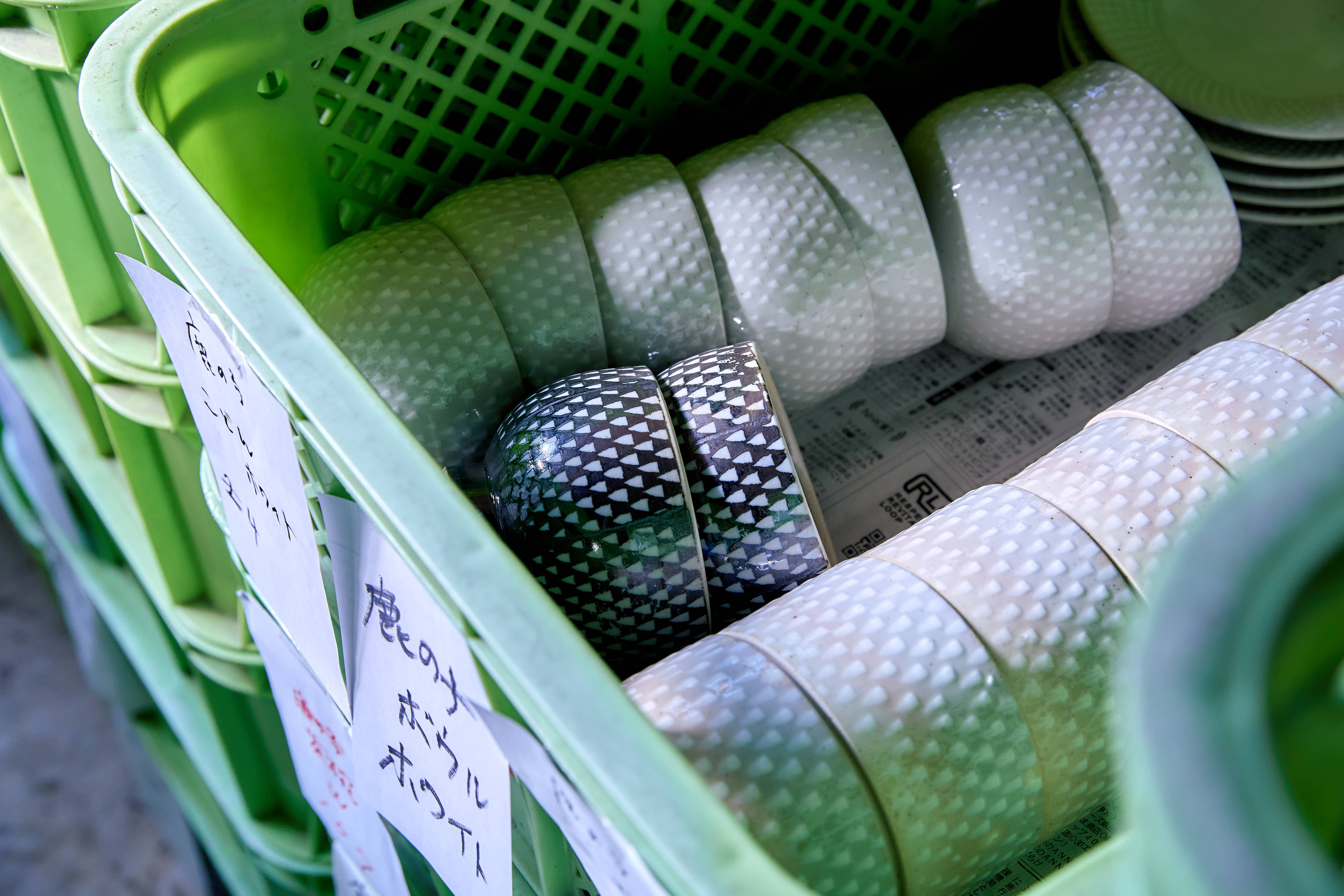 機械でしかできない工皋もありたすが、型䜜りに絵付けや釉掛けなど、波䜐芋焌は職人さんたちによるひず぀ひず぀の手仕事によっお生み出されおいる割合が倧きいです。