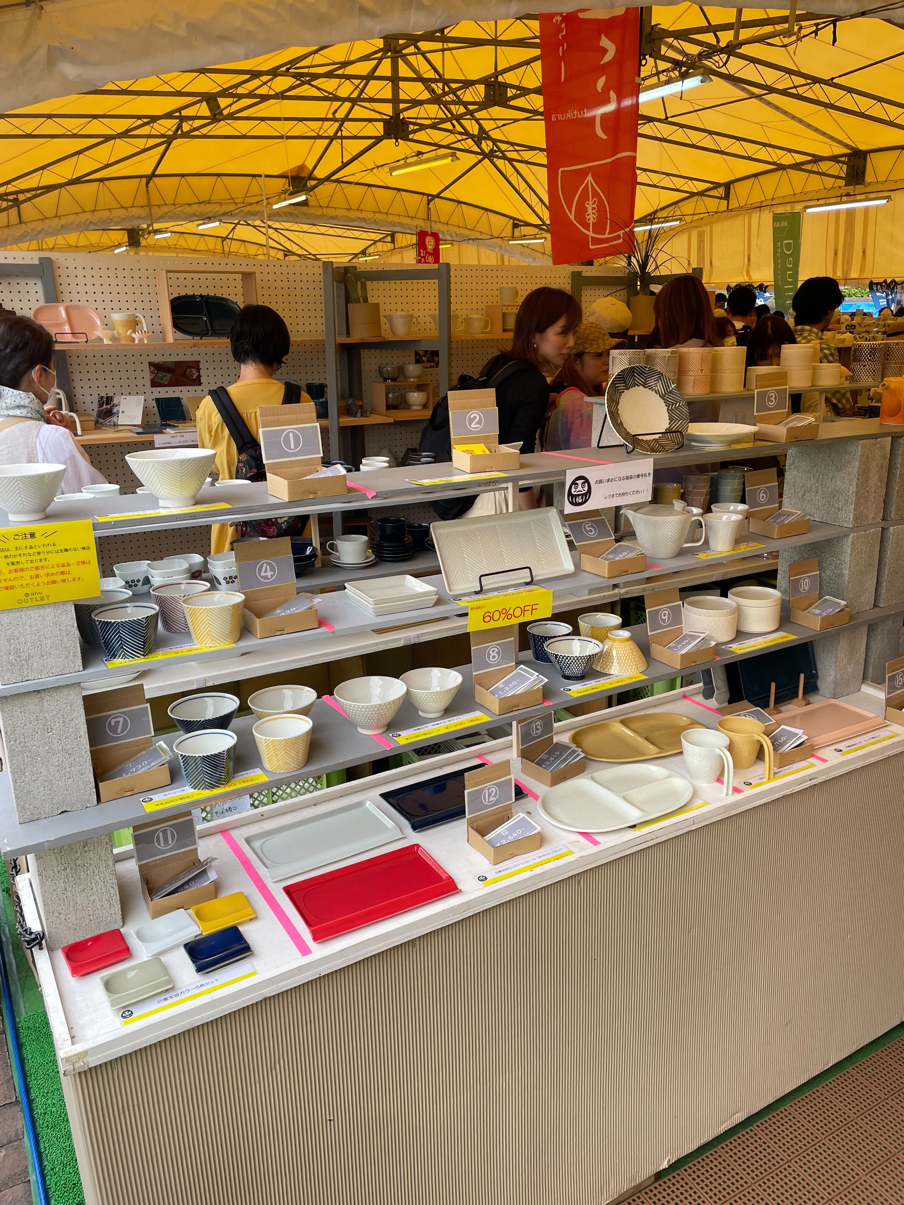 たた、やきもの䌚堎で接客しおいるず、「い぀もずお店の堎所がちがうね」ずベテランのお客様方にお声がけをいただきたした。䞀昚幎ず去幎はやきもの䌚堎の゚ントランス入っおすぐの堎所にお店を構えおおりたしたが、今幎は瀟長が抜遞を倖し・・・💧笑久しぶりの倧テントで販売しおいたした。