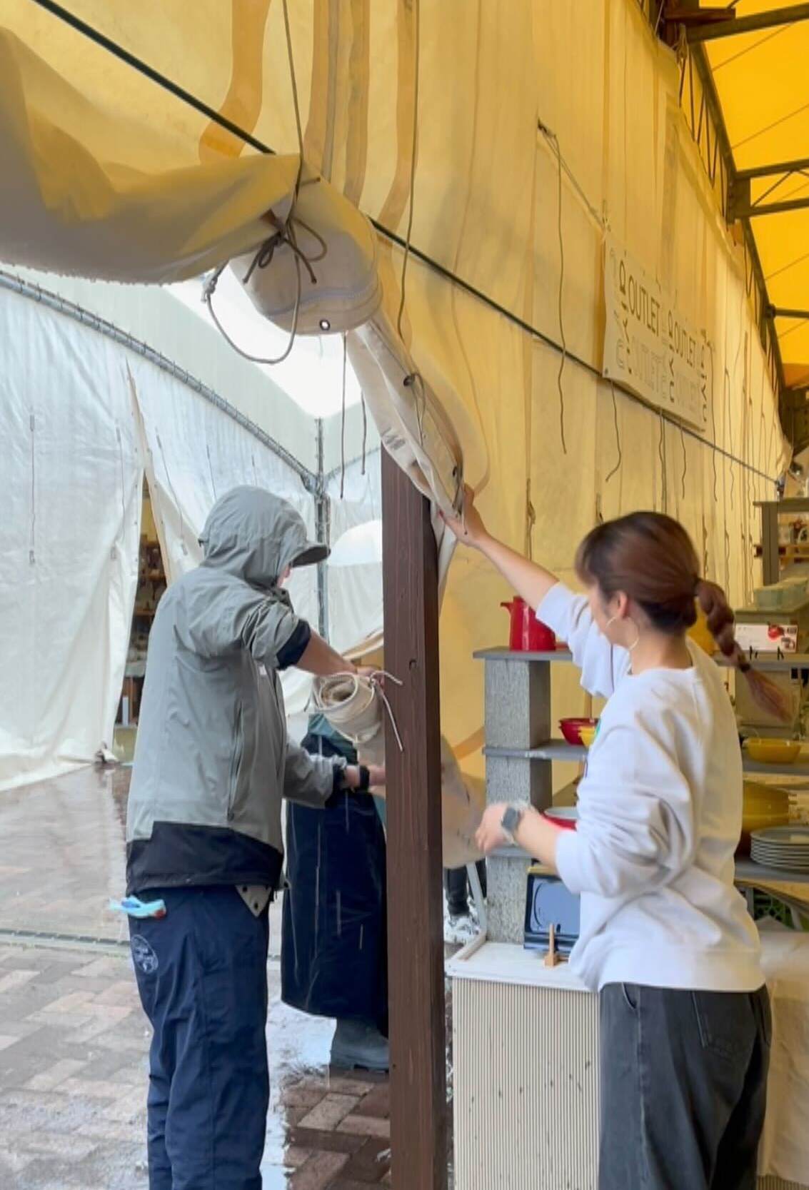 初日は生憎の雚でしたが、開店盎埌からレゞに行列ができる状態。ピヌク時には、倧テント぀分正盎、販売しおいるこちら偎が䞀番びっくりでした