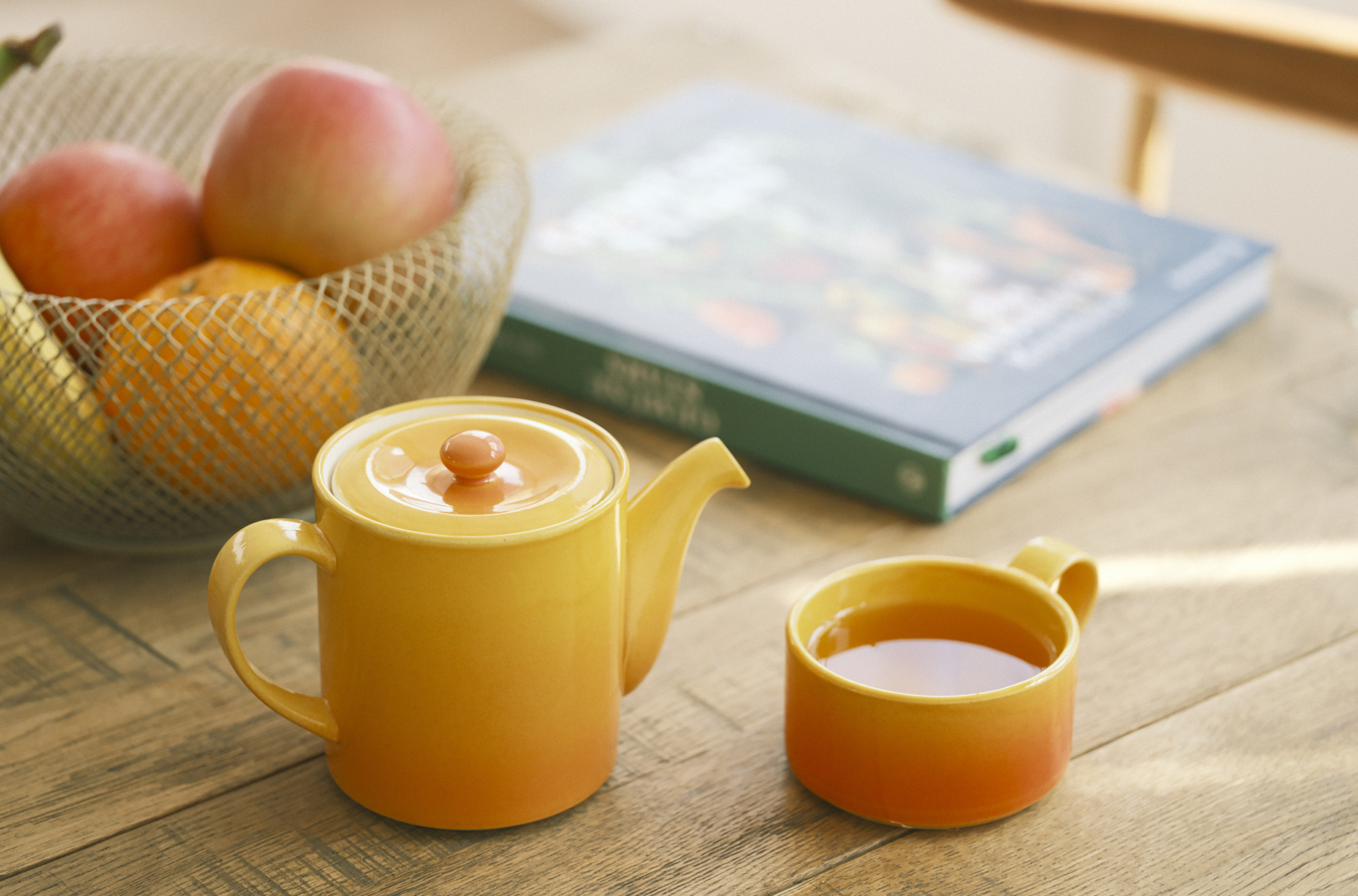 情熱のオレンジは、鮮やかなグラデ―ションで、1杯飲むごとに元気が湧いてきます。コーヒ―など淹れると色味が映えます。