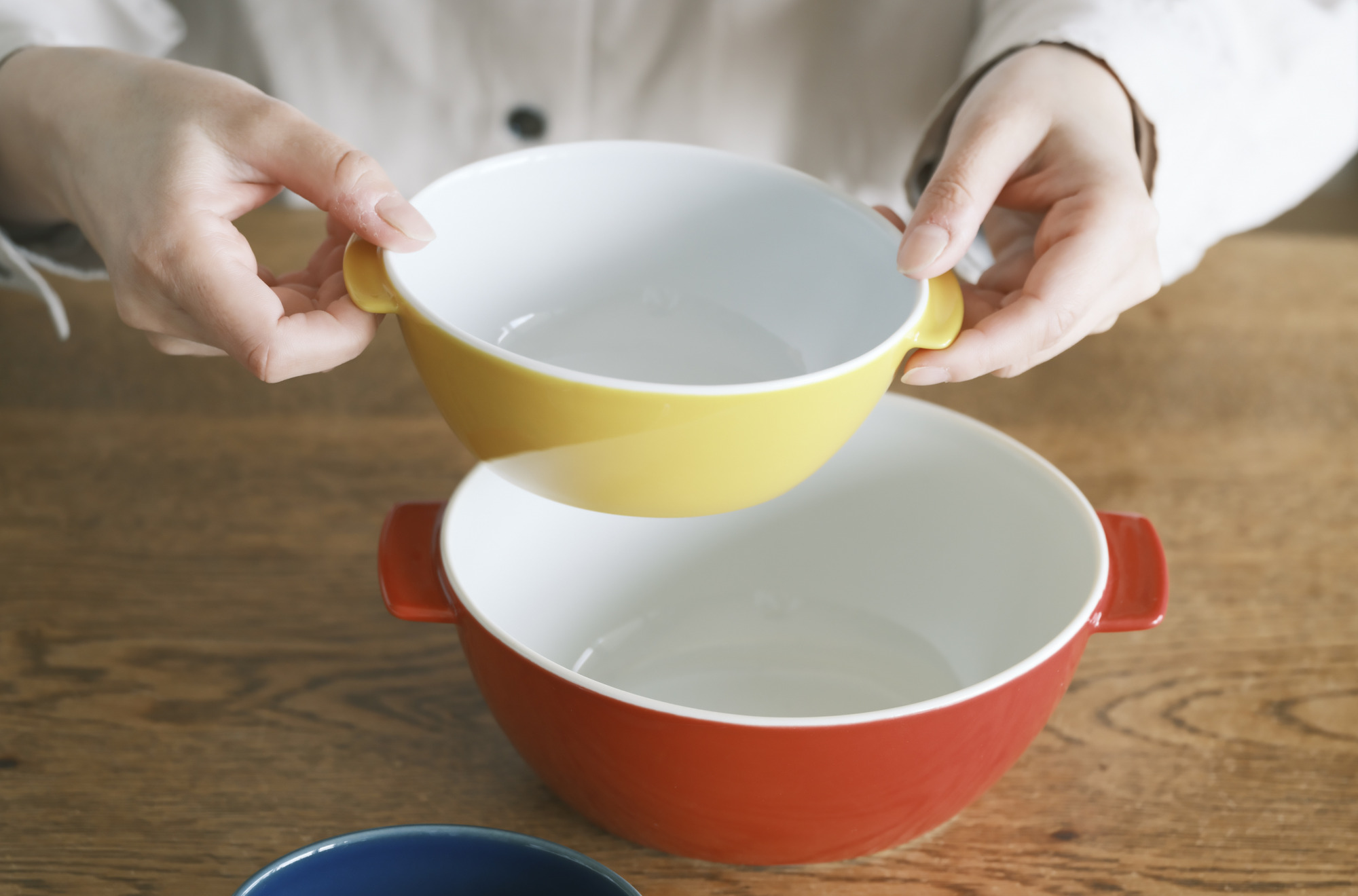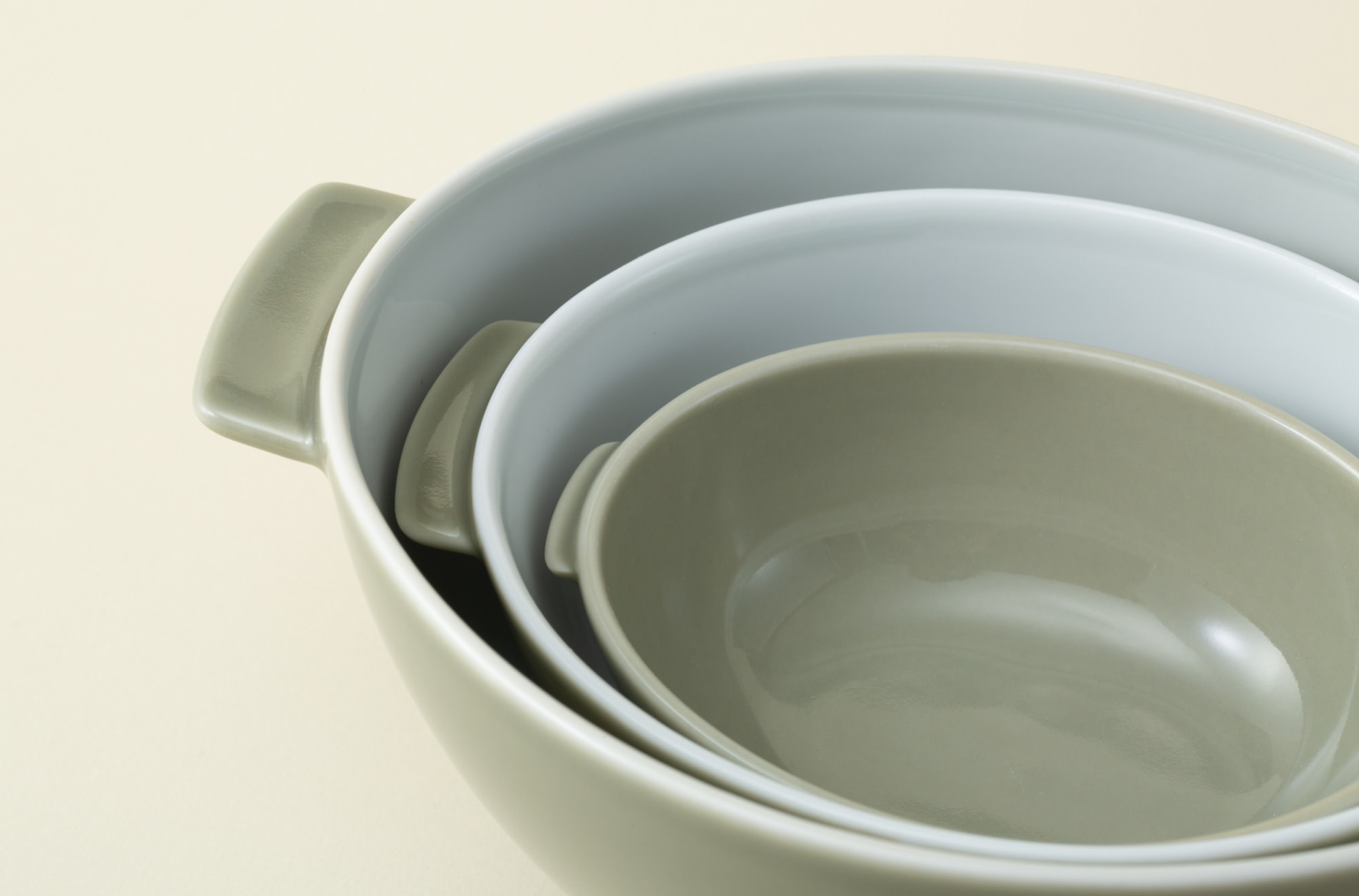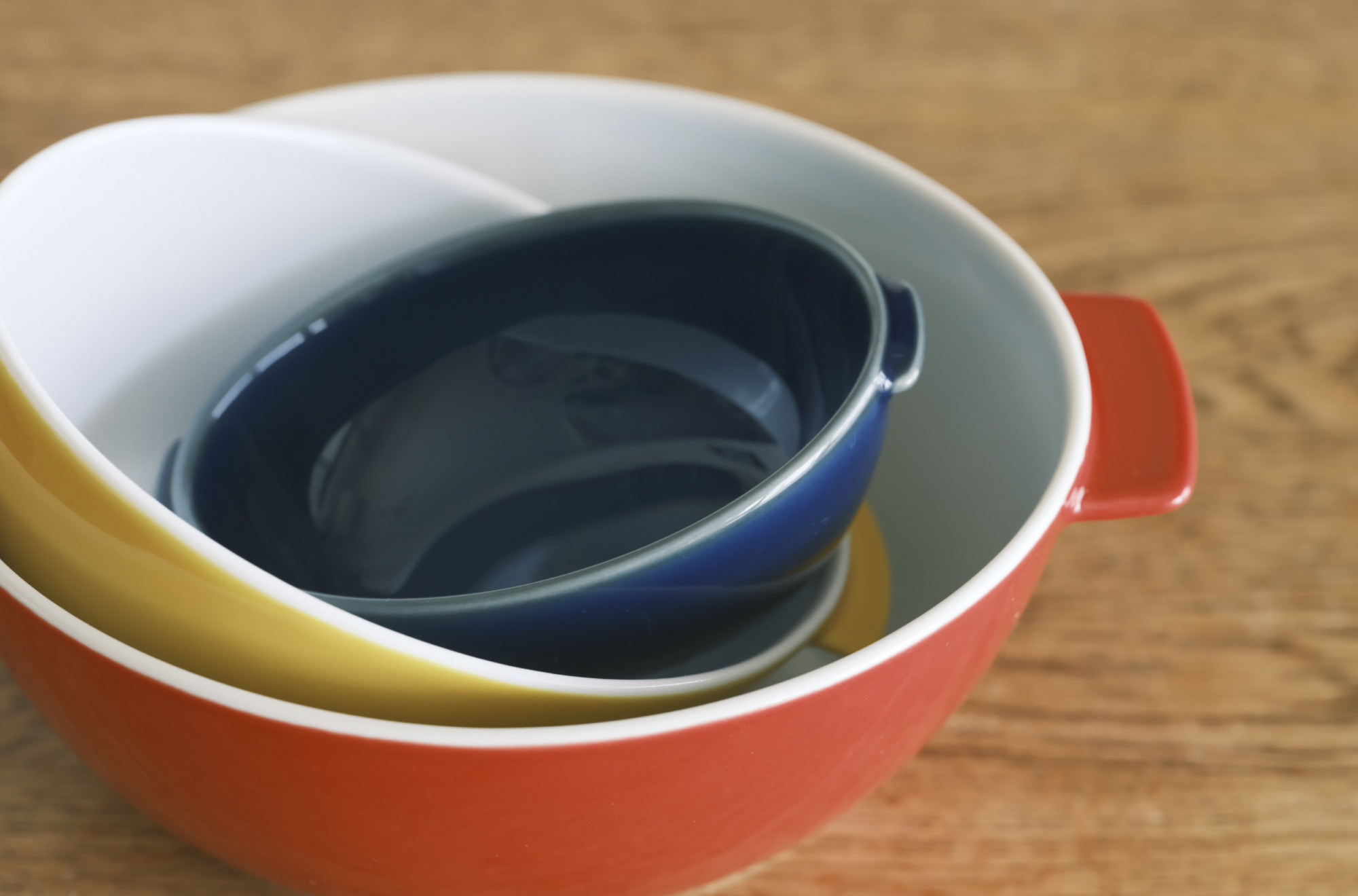 e丼、e丼ミニと入れ子のように重ねて収納できるので、食器棚もスッキリ