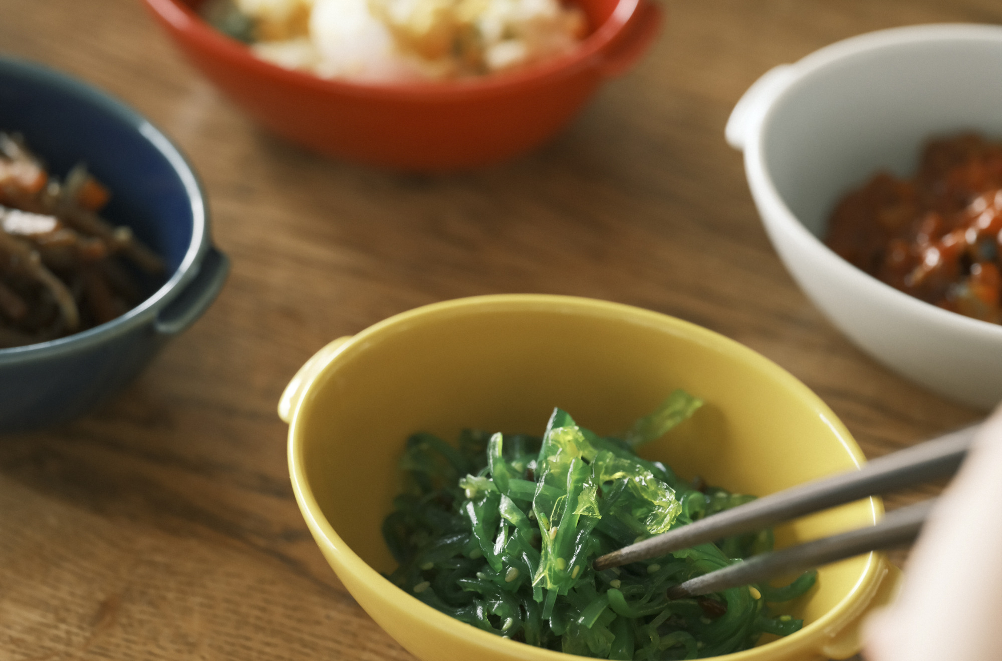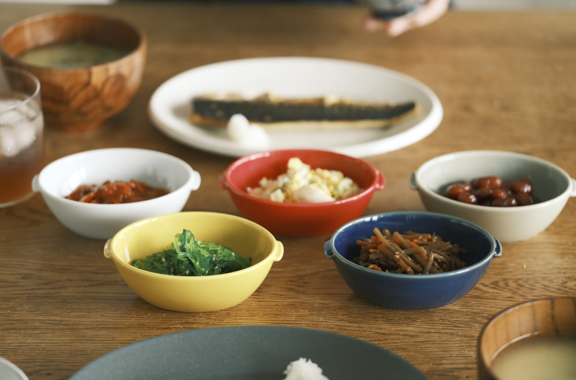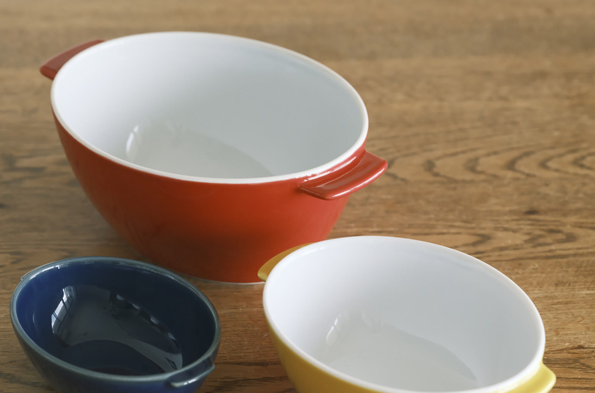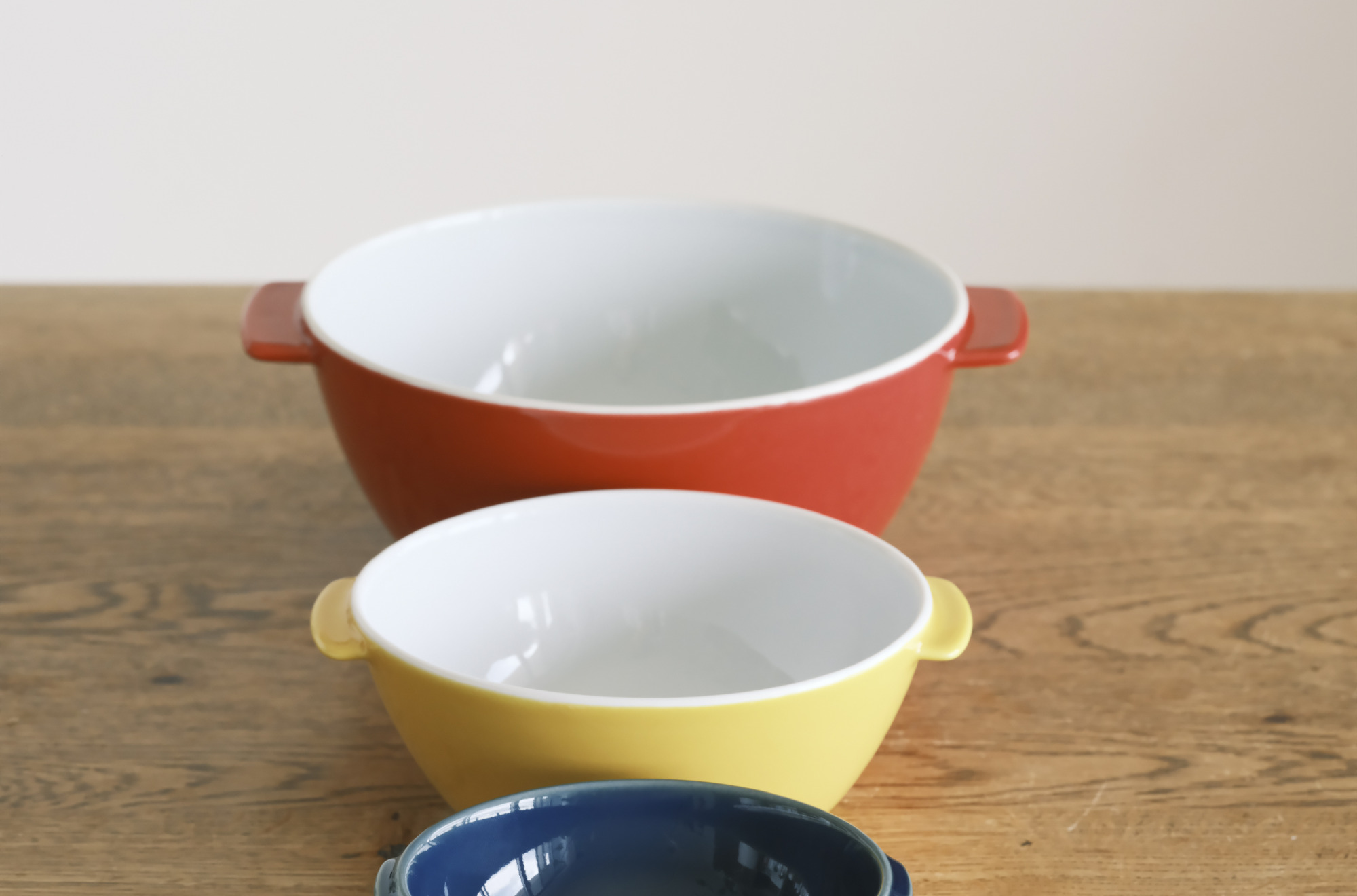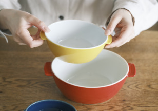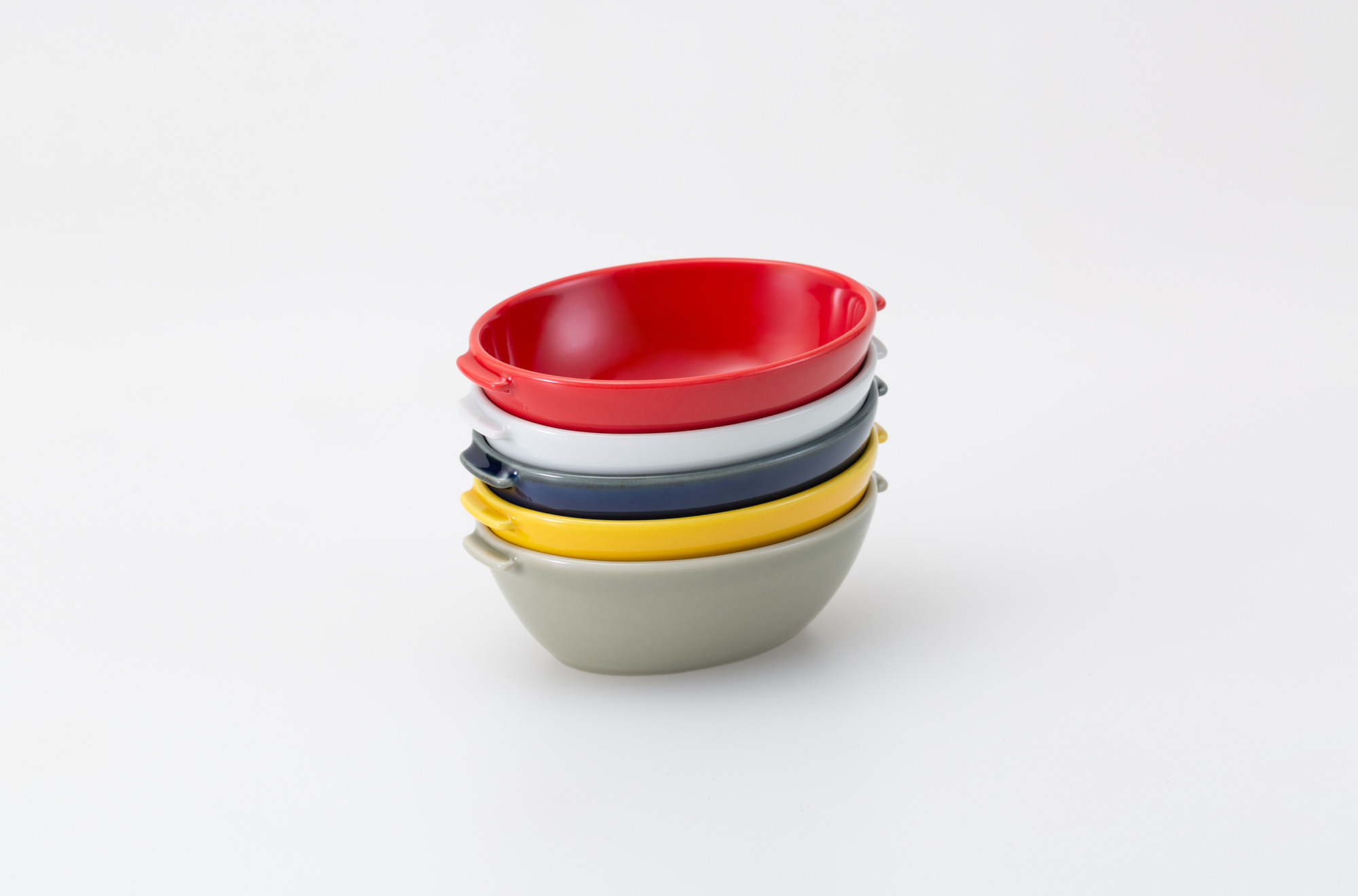 ホワイト、ルリ、ベージュ、イエロー、レッドの5色展開で食卓を彩ります。
