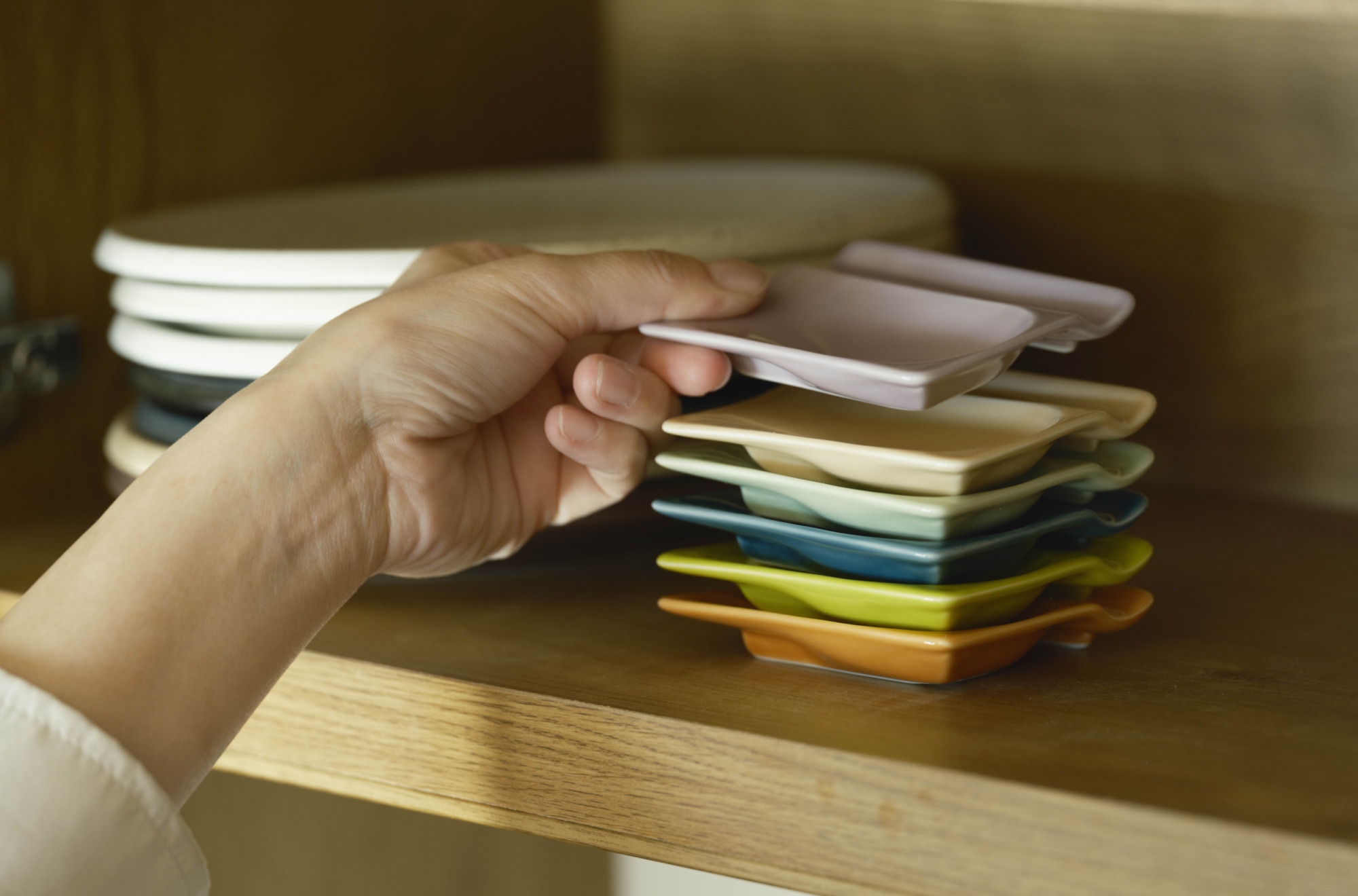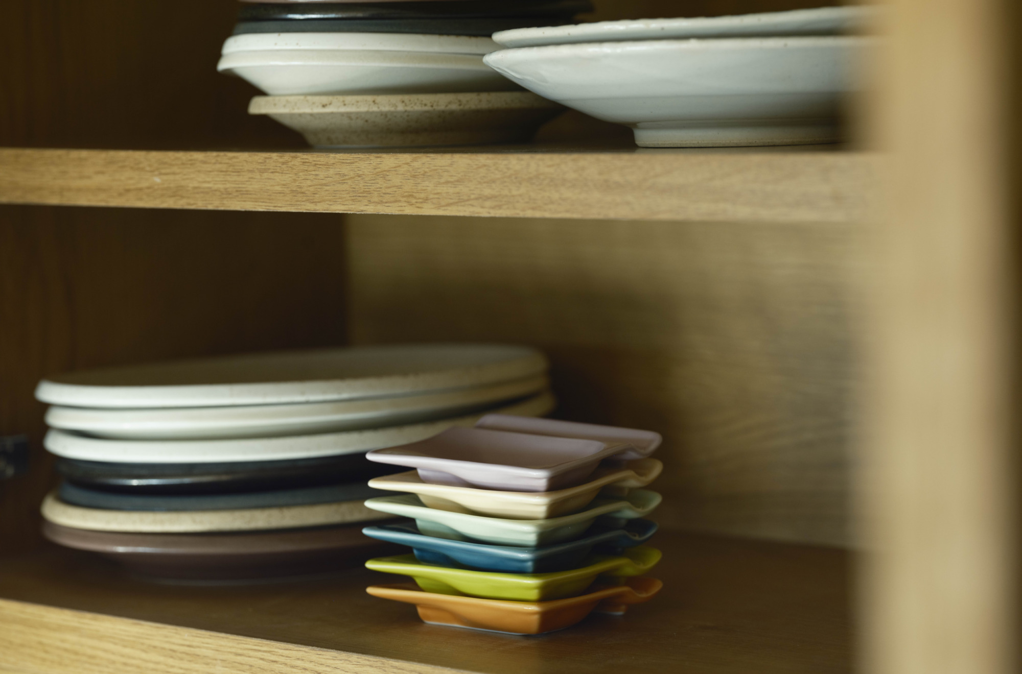 箸置き、スプーンのカトラリーとして。くぼみにお醤油を注げば差しちょことして。お茶うけ用小皿にも。小さいアイテムながら、使えるシーンに広がりのある一枚。くぼみと溝があるので重ねても安定し、収納便利。おみやげや贈答にも選ばれるaiyuで最も人気のある商品。小さな一枚ですが、豊かに食卓のコーディネートを楽しませてくれます。一人一枚持っておきたいアイテムです。季節やシーンに合わせて柄を使い分けるのもおすすめ。