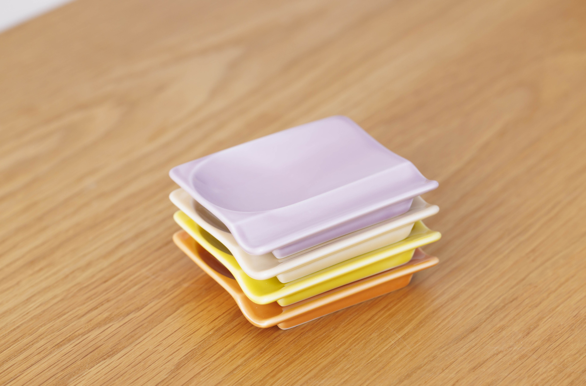 箸置き、スプーンのカトラリーとして。くぼみにお醤油を注げば差しちょことして。お茶うけ用小皿にも。小さいアイテムながら、使えるシーンに広がりのある一枚。くぼみと溝があるので重ねても安定し、収納便利。おみやげや贈答にも選ばれるaiyuで最も人気のある商品。小さな一枚ですが、豊かに食卓のコーディネートを楽しませてくれます。一人一枚持っておきたいアイテムです。季節やシーンに合わせて柄を使い分けるのもおすすめ。